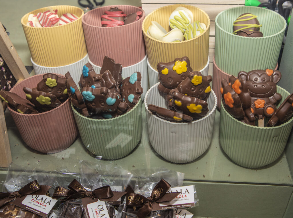 De winkel van Olala staat vol met mooie en heerlijk ruikende chocola.